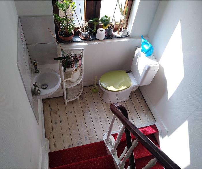 9. Kivettem néhány napra egy szobát egy airbnb-n hirdetett szálláshelyen, aminek a közös mosdója a lépcsőfordulóban van kialakítva. Erről valahogy nem tett említést a bérbeadó a hirdetésben.
