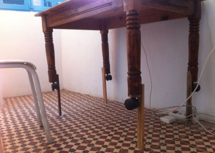 4. Mondtam a tulajdonosnak, hogy szükségem lenne egy magasabb asztalra az albérletben, mire ő azt mondta, hogy pár napon belül hoz nekem egyet. Ezzel állított be: