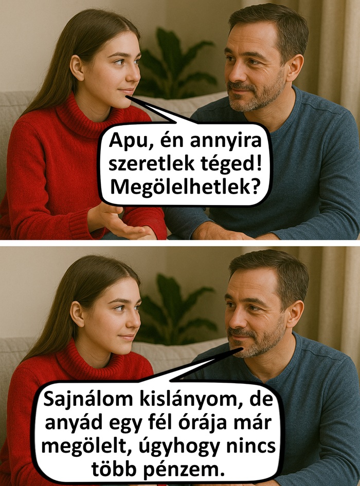 (1.) Az apuka nem most jött le a falvédőről, és egyből leesett neki, hogy mire megy ki a játék.