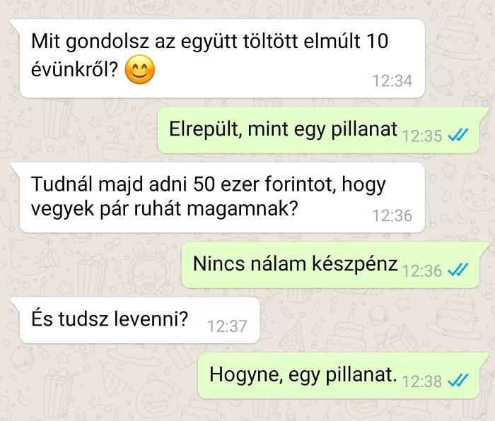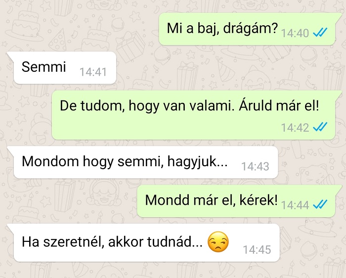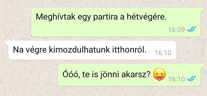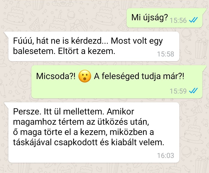 7. Azt egy szóval sem említette a férj, hogy mindketten hivatalosak lennének a partira.