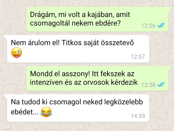 2. A feleség azonnal ott termett, hogy gondját viselje a férjének, de azért nem maradhatott el a „kérdőre vonás” sem.