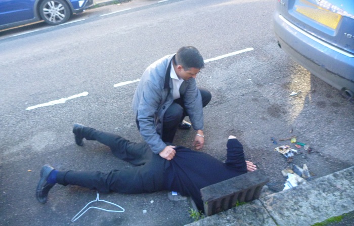11. A vőlegény tanúja minden erejével próbálja kihalászni a csatárnából a véletlenül beleejtett eljegyzési gyűrűket: