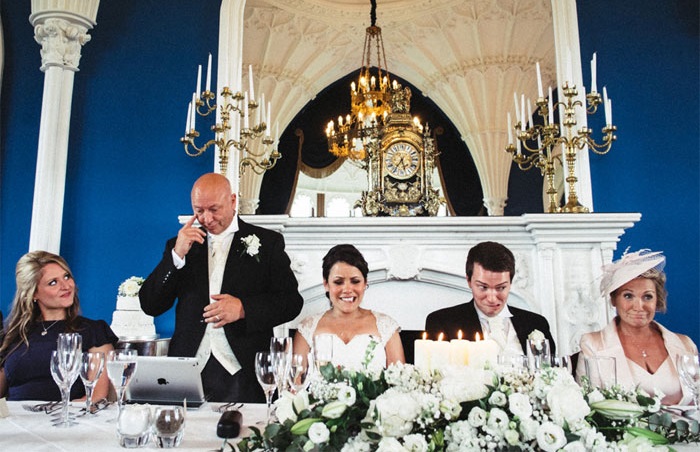 14. Az édesapám egy olyan beszédet mondott az esküvőnkön, ami nem volt mentes a kínos poénoktól. Az arcunk mindent elárul: