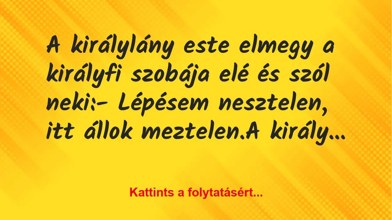 A királylány este elmegy a királyfi szobája elé és szól neki: – Lépésem nesztelen, itt állok m*ztelen. A királyfi beengedi. Másnap este megint megy a…
