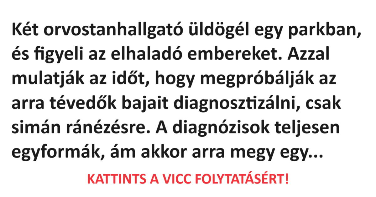 Két orvostanhallgató üldögél egy parkban, és figyeli az elhaladó embereket. Azzal múlatják az időt, hogy megpróbálják az arra tévedők bajait diagnosztizálni, csak simán ránézésre. A…