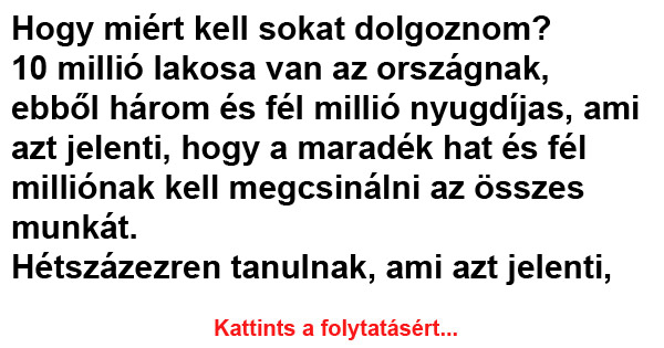 Hogy miért kell sokat dolgoznom? 10 millió lakosa van az országnak, ebből három és fél millió nyugdíjas, ami azt jelenti, hogy a maradék hat és…