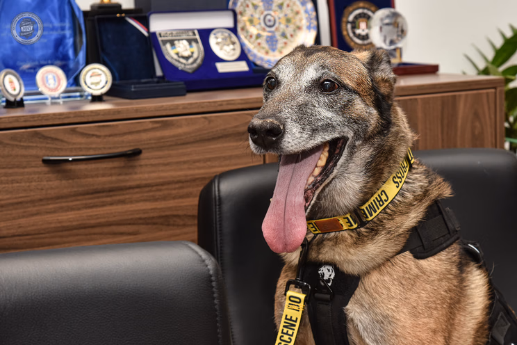 Utolsó kép a szolgálatban, most már a boldog nyugdíjas kutyaévek várnak Ticora / Fotó: police.hu