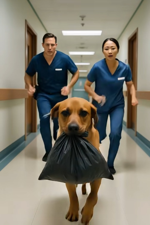 Egy kutya szaladt a kórház folyosóján, fekete zacskót tartva a szájában: amikor az orvosok végre utolérték, valami borzalmas dologra jöttek rá 😢🫣 Egy teljesen átlagos…