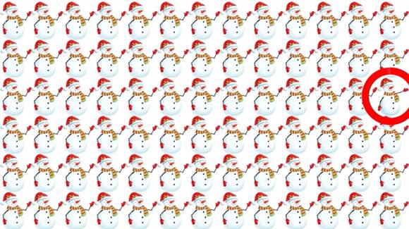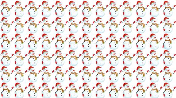 Íme, a második képrejtvény. Ugyanazok a szabályok itt is. Hol van az a hóember, amelyik különbözik a többitől?