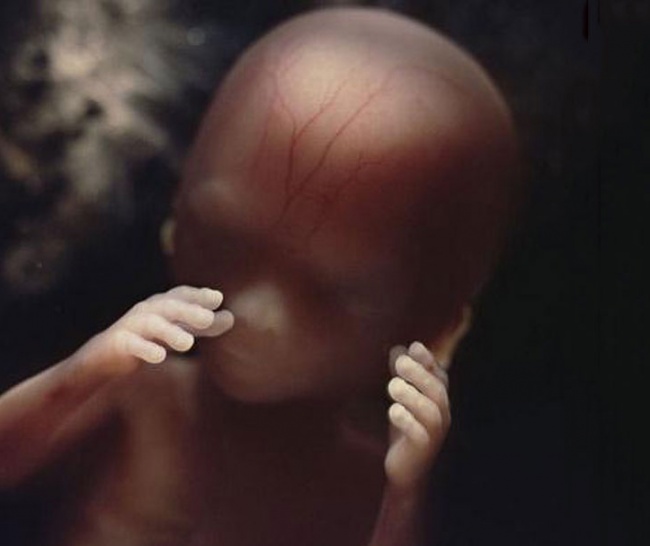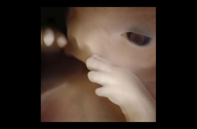 A fejlődés 8. hetében: az embrió védve van a magzati burokban.