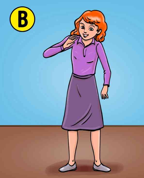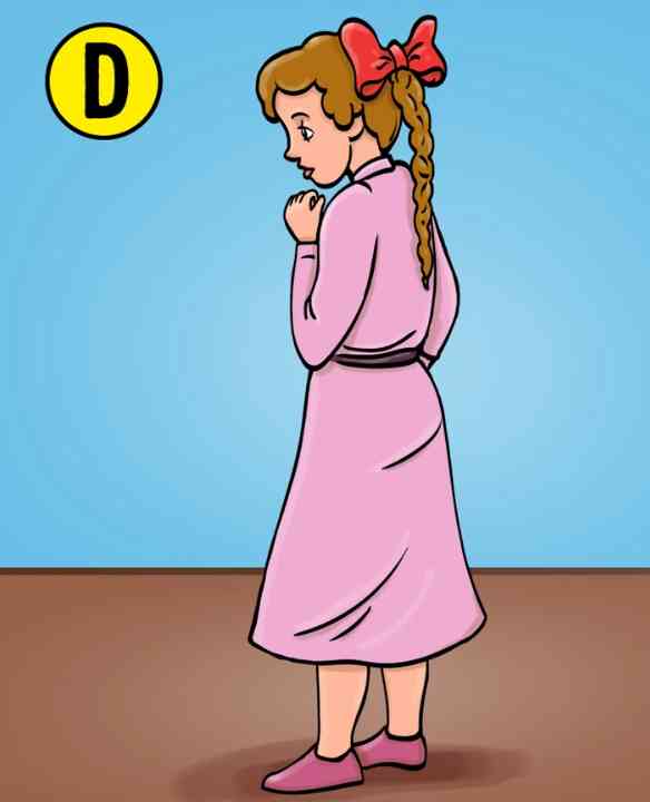 A következő lehetőség a B lány. Úgy néz ki, mintha ő lenne a legidősebb a gyerekek közül, és valószínűleg egy idősebb nővér, aki gondját viseli a kistestvéreinek, amikor az anyukájuk elfoglalt vagy nincs a közelben. Úgy néz az A fiúra, mintha ő lenne a bűnös. Lehetséges, hogy ez az ő győztes mosolya, miután sikeresen bűnbakot csinált a fiúból. Másrészt vannak, akik azt gondolhatják, hogy a lány megnyugtató és megértő pillantással néz a fiúra, és azért mosolyog, hogy ítélkezés nélkül mutassa ki a szeretetét.