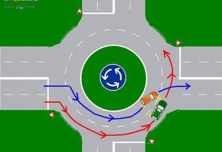 Kinek van elsőbbsége az alábbi ábrán látható körförgalomban? A rendőrök szerint ez az egyik legkényesebb helyzet, amivel egy autóvezető találkozhat…